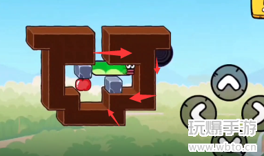 3、第三步:吃完苹果以后,向上然后向右将第二块石块推到指定位置。