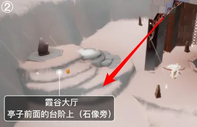 2位置二、霞谷大厅亭子前面的台阶上(石像旁)