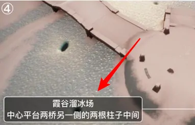 4位置四、霞谷溜冰场中心平台两桥另一侧的两根柱子中间