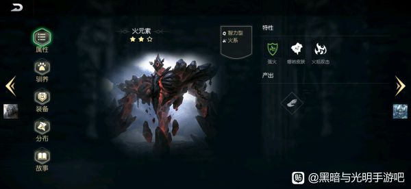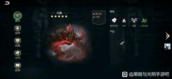 火系伤害,伤害高血量高,暗系抗性8%,大范围伤害,暗影营地主攻手,(战斗宠)目前版本伤害数据低,等待后续调整;