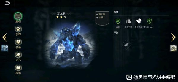 水系伤害,解锁领域技能有冰冻效果,普攻现在只有减速,无法叠加冰冻,召唤出来会降低两个等级温度,(战斗宠);