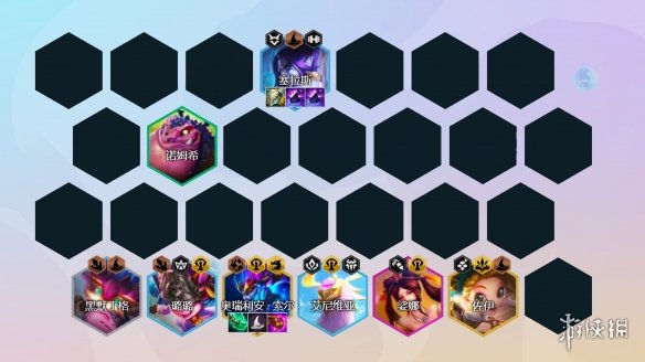 阵容组成:黑默丁格、塞拉斯、璐璐艾尼维亚、娑娜、索尔、佐伊、巴德
