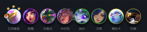 凤凰、妮寇、石傲玉、卡尔玛、纳尔、艾希、索拉卡、巴德