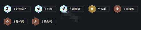 1吟游诗人、1龙神、1唤星者、9玉龙、1冒险者、2秘术师、2换形师