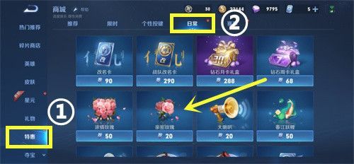 玩家在“商城-特惠-日常”页面中,往下拉就可以去购买亲密玫瑰了,同理浓情玫瑰也是在那购买的!