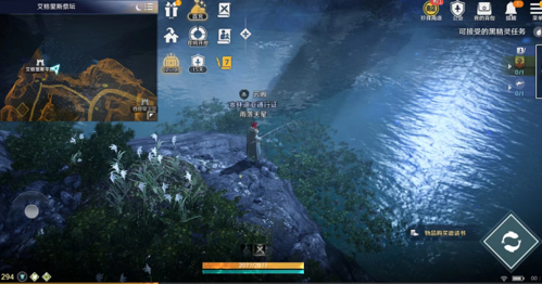 3、最后我们到水边,等钓鱼键出现,点击即可钓鱼,可以选择自动钓鱼,也可以选择手动钓鱼。