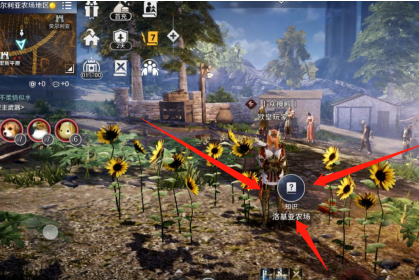2、然后我们根据任务到道路分岔位置,看到大片向日葵。