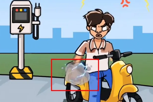 直接摩擦电瓶车的充电处即可过关,摩擦生电!
