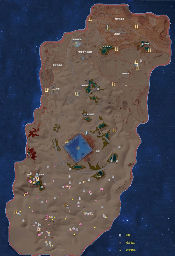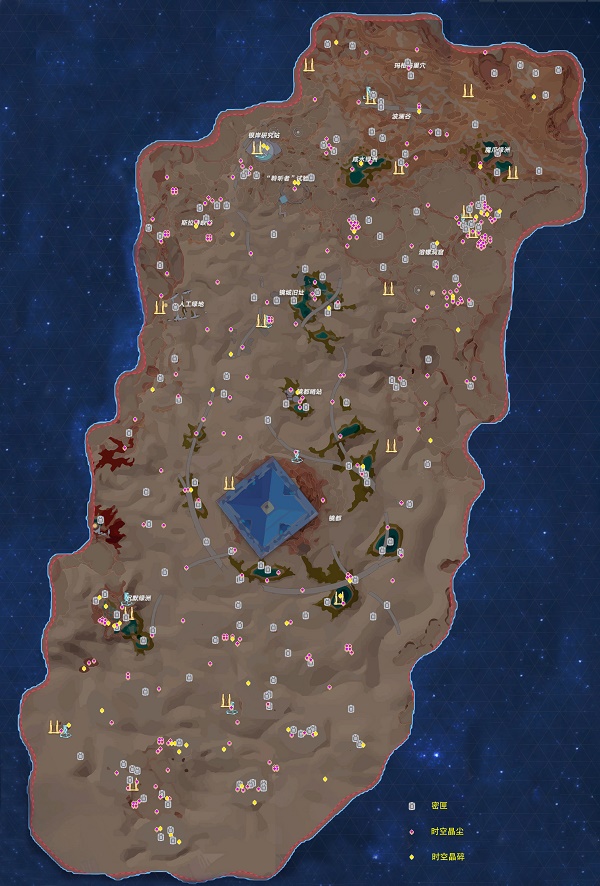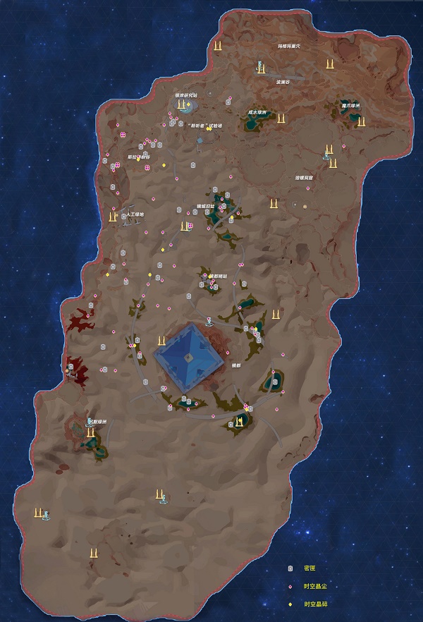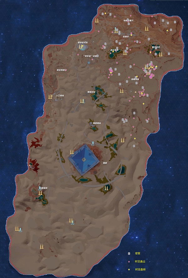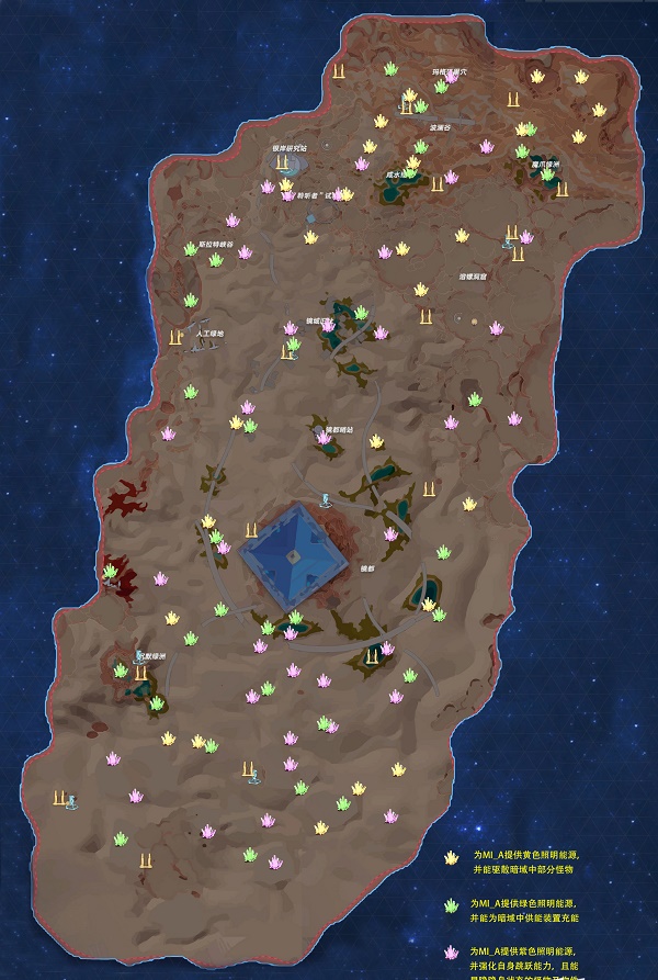 1.暗域晶石点位(图中只标记了解谜经常用到的绿色、紫色、黄色晶石)【部分距离很近的同颜色晶石,图中只做一个标记】