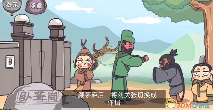 桃园梗传游戏是一款很有意思的三国风休闲娱乐小游戏,游戏中也有很多有趣的剧情,桃园梗传第8关的主题是:请先生出山,在这一关卡里,刘备、关羽、张飞三人需要请诸葛亮出山,即可顺利通关哦,下面小编就为大家准备了桃园梗传第8关请先生出山通关攻略,祝大家都能顺利通关。