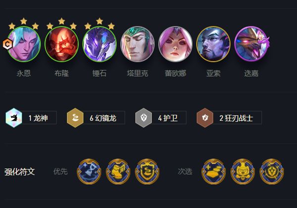 羁绊效果为1龙神6幻境龙4护卫2狂刃战士。
