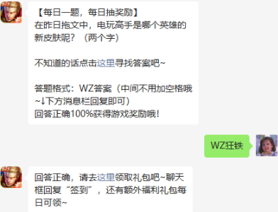 叮叮叮,全新的一天已经开始啦,王者荣耀游戏微信公众号又带着今日份的题目正式的跟大家见面啦:在昨日推文中,玩高手是哪个英雄的新皮肤呢?(两个字)?这是王者荣耀游戏官方于2022年06月16日全新为诸位喜欢玩农药游戏的玩家小伙伴们所精心带来的今日份的最新问题,大家都有没有及时的去关注这道题目呢!