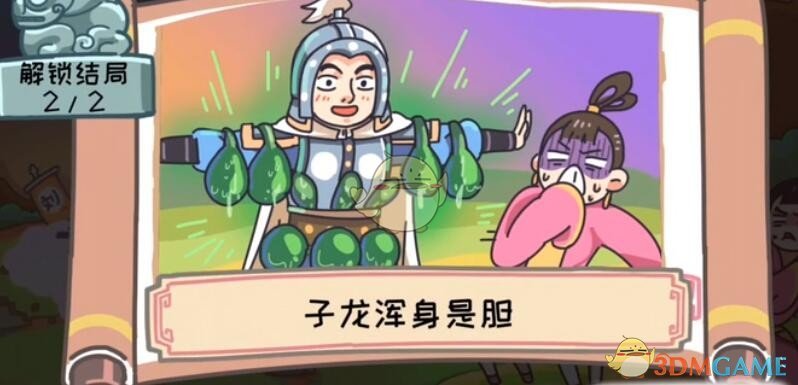 点击观看“锦囊”选项,看完广告后,屏幕右上方可积累赵云的胆气,每次进出加一点胆气值,进出7次胆气攒满7,再次点击赵云,即可解锁另一个彩蛋结局通关了。