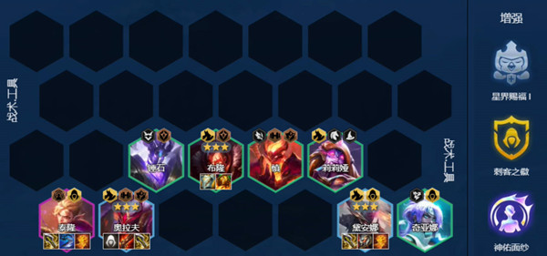 2、强化符文可以选择,星界赐福,刺客之徽,神佑面纱,同时和刺客有关的羁绊也是可以选择的,再不济屠龙勇士相关的强化符文也是可以选择的;