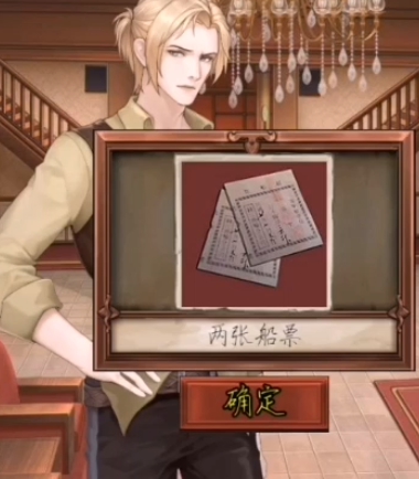 描述:两张去雾港的船票,上面的蓝戳显示是今天上午卖出的。