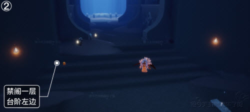 1、在禁阁一层入口右边的高台上,就是那个双人门的右侧