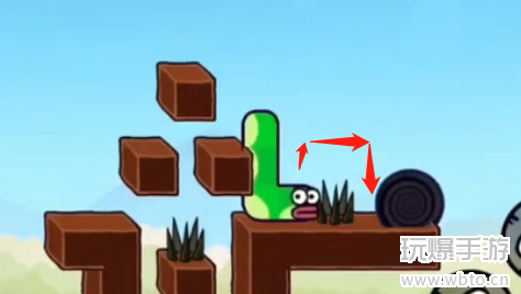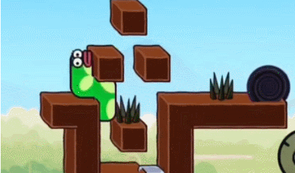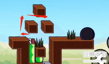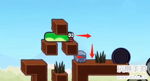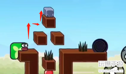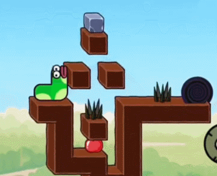 3、直行把石头顶下压住尖刺,左边即可吃掉苹果。