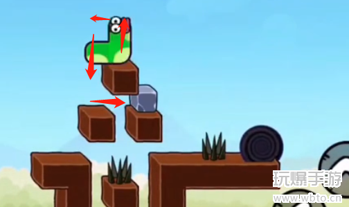 2、向右上翻转身体之后直行再顶下石头,步骤如下图所示。