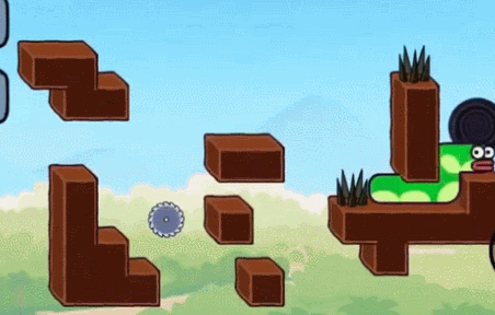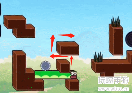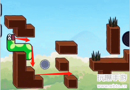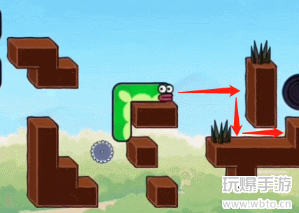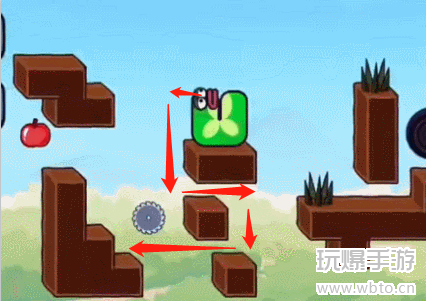 1、首先我们向左下前进走过齿轮吃掉苹果,如下图所示。