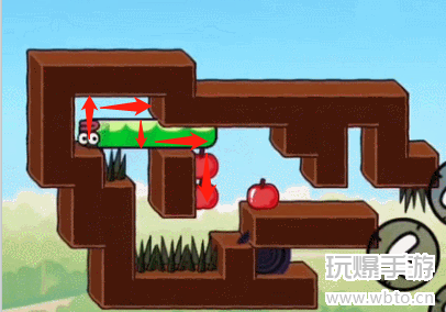 1、首先我们先不要吃附近的苹果,向右上移动,步骤如下图所示。
