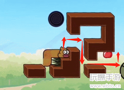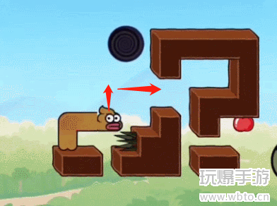 2、然后我们吃掉苹果后向左上翻转身体,步骤如下图所示。