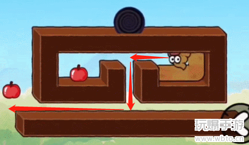 3、然后我们向左移动,吃掉最左侧的苹果,如图所示。