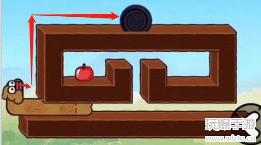 1、首先我们先向右移动,然后向上吃到苹果,步骤如下图所示。