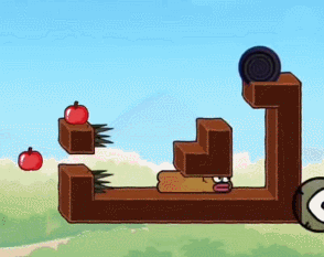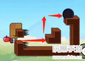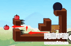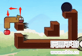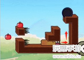 3、然后我们向上移动,踩在左侧苹果上吃掉右侧的苹果,如图所示。