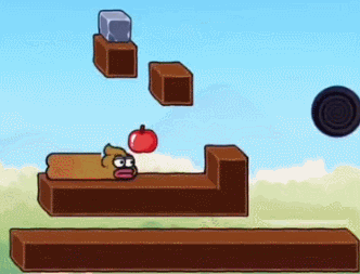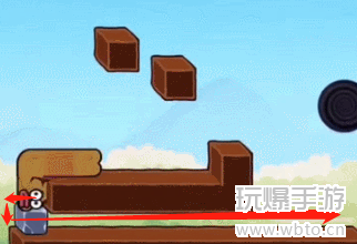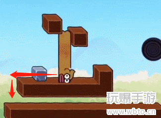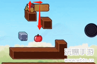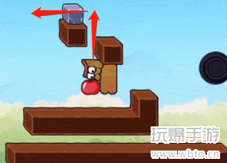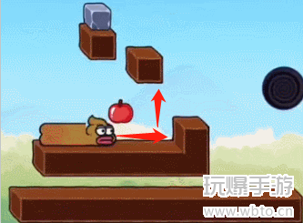 2、然后我们踩在苹果上去右侧阶梯,然后顶掉石头,步骤如下图所示。