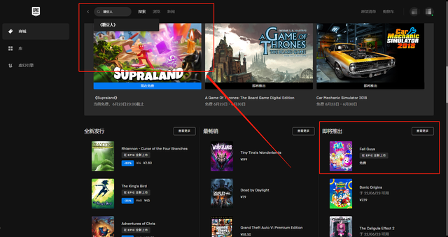 2.搜索栏输入《糖豆人》,点击进入主页