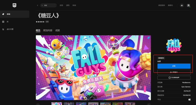 4.以上步骤完成即可成功免费领取入库,点击左侧“库”,在库中找到《糖豆人》点击安装即可