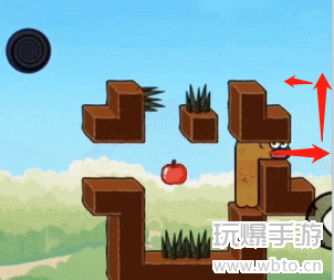4、然后我们吃掉下边苹果后向上移动,如图所示。