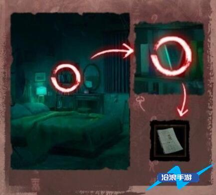 1、剧情过后,查看卧室里面的书籍,点击书架上发光的书,翻到最后,得到提示纸条。