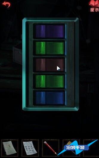 6、鬼走后进入卧室,根据纸条上的颜色看墙上的画顺序,颜色输入顺序如下图。