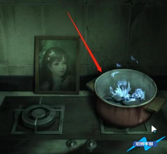 15、将纸扎剪刀与灶台互动点燃,丢进旁边的锅里,剪刀烧给女主变成了真剪刀。