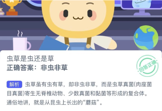 提及冬虫夏草,你可能没有食用过,但是一定知道它的名声有多么的大吧!那么,虫草是虫还是草?这是支付宝蚂蚁新村小课堂2022年06月24日全新为诸位勤劳能干的村长朋友们所精心准备的今日份的全新题目,不知道诸位亲爱的小伙伴们都清楚这道问题的正确答案吗?