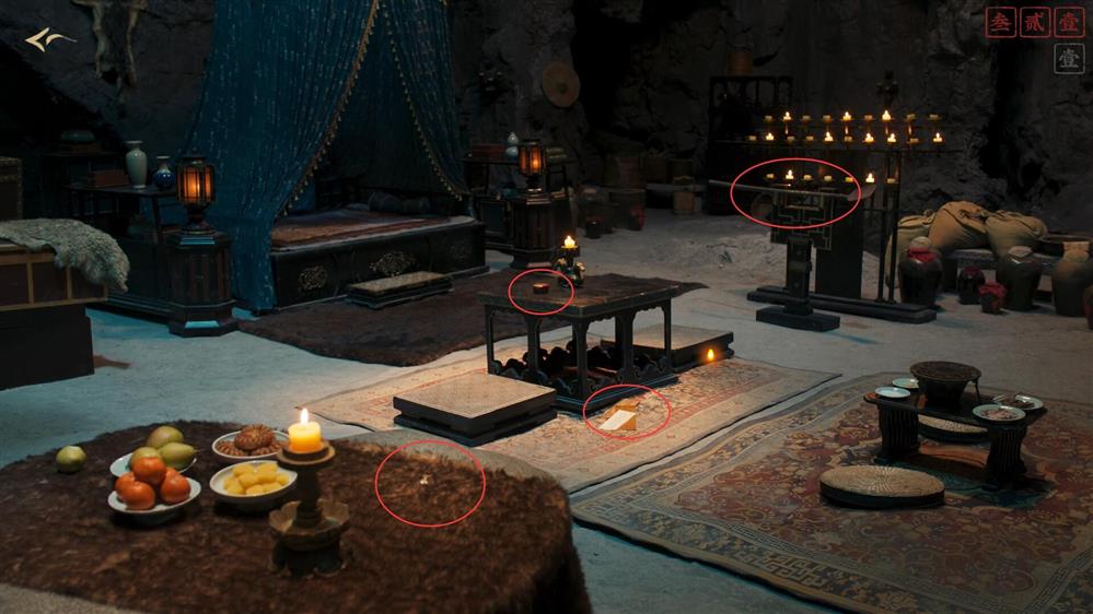 之后进入搜查环节,调查豪窟的【耳饰】、【脂粉】、【信件】以及【朝廷的赠物】。