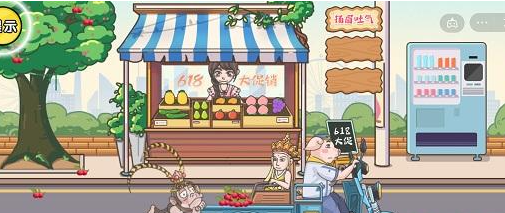 3、之后猴子就会打杨梅树,杨梅树就会掉落杨梅出来,把掉落的杨梅给唐僧就是扬眉吐气。