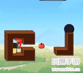 5、最后一路向右直行吃掉苹果后向上进入黑洞。