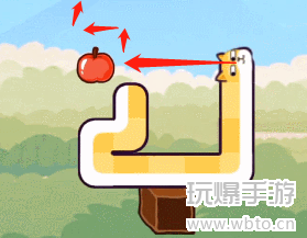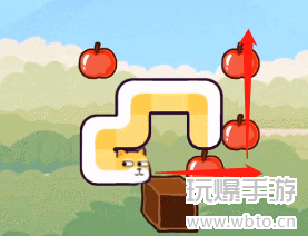 3、然后我们向右吃掉苹果后向上吃掉两个苹果,步骤如图所示。