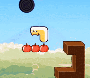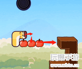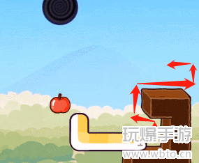 5、最后向左一直移动到苹果上方,踩着苹果进入黑洞。