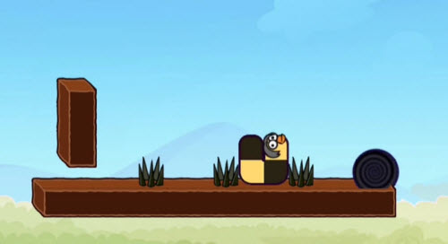 1、掉头去吃最左边的两个苹果,吃完了就掉头往洞那边爬。