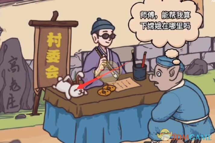 最后,将黑色兔子戴在算命先生头上即可通关本关。