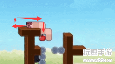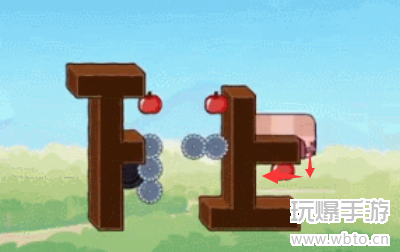 4、然后向下吃掉苹果后踩在最后一个苹果上去到左侧阶梯,步骤如图所示。