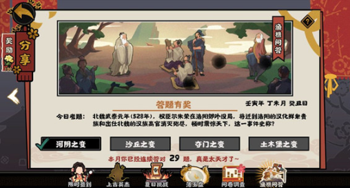以上就是有关于无悔华夏渔樵问答6月29日答案是什么-无悔华夏渔樵问答06月29日最新问题及答案更新的介绍啦,不知道大家喜不喜欢小编的整理呢!