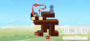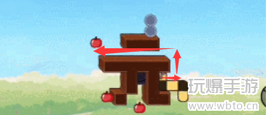 2、然后我们向左移动一格,掉到下方苹果上,步骤如下图所示。