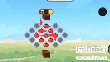 2、然后我们向下移动踩在阶梯上向上吃苹果,步骤如下图所示。