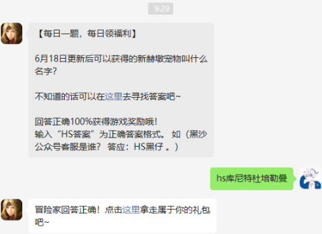 6月18日更新后可以获得的新赫墩宠物叫什么名字?
