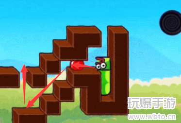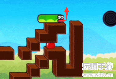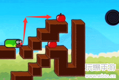 3、然后我们向左吃掉苹果顺着阶梯返回,步骤如图所示。