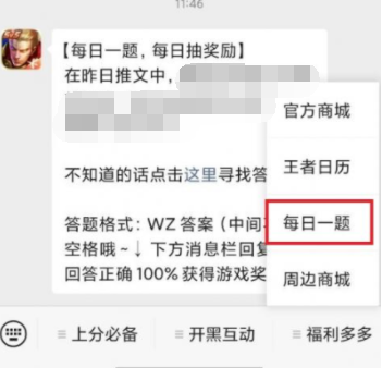王者荣耀每日一题参与方式: